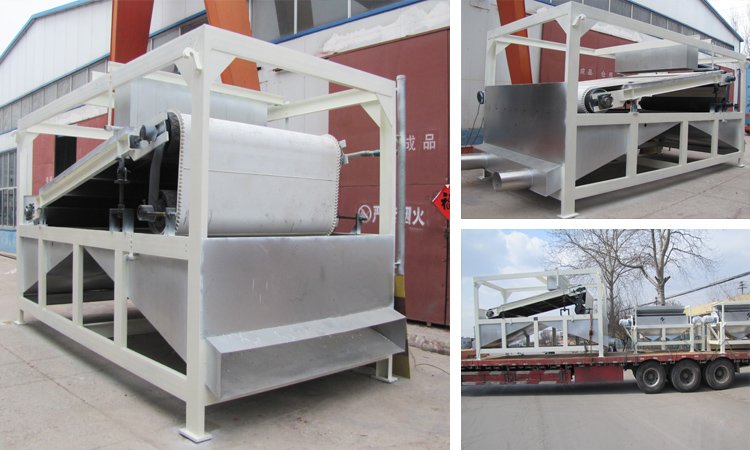 GTC型濕法板式磁分離機機主要由支架、板式磁選系統、入料攪拌系統、水源系統、卸鐵系統、調節系統等結構組成。工作時,物料流向和卸鐵系統成反向逆流式,非磁性物質利用物理學結構原理自流至出料口,經卸礦沖洗達到完全卸干凈的目的。磁性物質經長距離、長區域、多次數被超強磁場吸附,經卸鐵系統逆向運轉至出鐵口,經卸礦沖洗達到完全卸干凈的目。