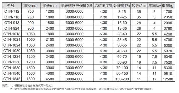 CTN型濕法全逆流式磁分離機其核心技術采用計算機模擬設計磁路,使磁選區的磁場分布更均勻,無空磁區,磁系大包角設計,滾筒表面磁場強度可達6000gs。槽體和滾筒表面做特殊耐磨處理,耐磨有多種方式可選,使整機壽命大大延長。二、示意圖