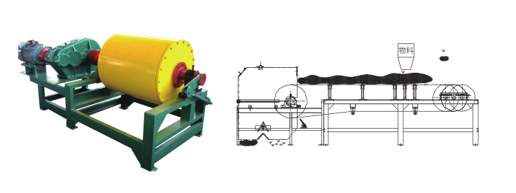 CTDG型永磁大塊干式磁選機是一種新型高效能的節能選礦設備。除現有定型產品外,還可根據用戶特定要求設計制作成不同磁感應強度,適用于不同皮帶規格的磁選機(磁滑輪)。產品廣泛用于冶金和其他行業,可滿足大、中、小礦山選廠需求;用戶磁選廠碎礦后各段預選作業,拋除混入的廢石,恢復地質品位,可節省能耗,提高選廠處理量;用于采場,從廢石中回收磁鐵礦石,提高礦石資源利用率;用于從鋼渣中回收金屬鐵;用于垃圾處理分揀有用金屬,改善環境。二、示意圖