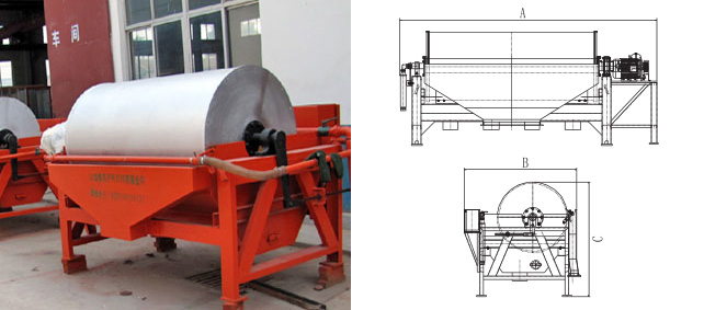 粗粒級濃縮磁選機的滾筒上部設置了浮動式壓濾輥,有恒定的壓力作用在滾筒表面的礦粉上,將礦粉中剩余的水分擠壓排除。