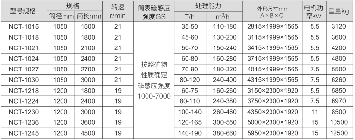 一、說明NCT型濃縮磁選機專門設計用于磁選流程中低濃度礦漿的濃縮,提高礦漿濃度。主要用于磨選流程中高頻篩篩分后篩上物粗粒級礦漿進入球磨作業時提高礦漿濃度,以提高球磨的磨礦效率,降低生產成本。同時細粒級濃縮磁選機應用于鐵精礦進入過濾作業前提高礦漿濃度,以提高過濾機的作業效率和作業質量,可有效降低鐵精粉的水分。