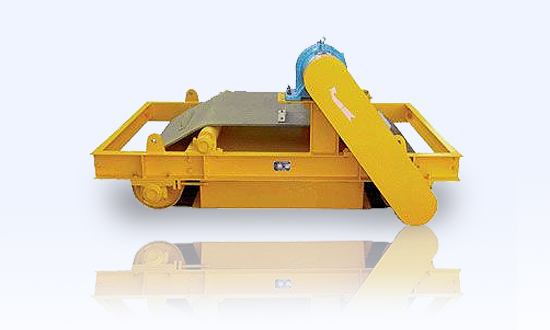 RCYDII型永磁自卸盤式除鐵器與RCYD型永磁自卸盤式除鐵器相比,其機架縮短,適于安裝空間受限制的場合。是由高性能永磁磁芯、棄鐵皮帶、減速電機、框架、滾筒等部分組成,與各種輸送機配套使用,適用于各行業輸送帶輸料除鐵??蓪崿F連續不斷的吸棄鐵。皮帶具有自動糾偏功能,低噪聲、運行可靠、維護簡單。其內部磁路采用計算機模擬設計、完善的雙磁極結構,保障整機在惡劣環境中無故障長期運行。擁有防爆型和鎧裝型。二、RCYDII型永磁自卸盤式除鐵器示意圖